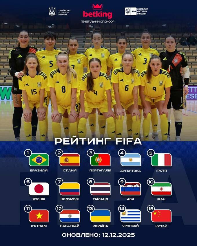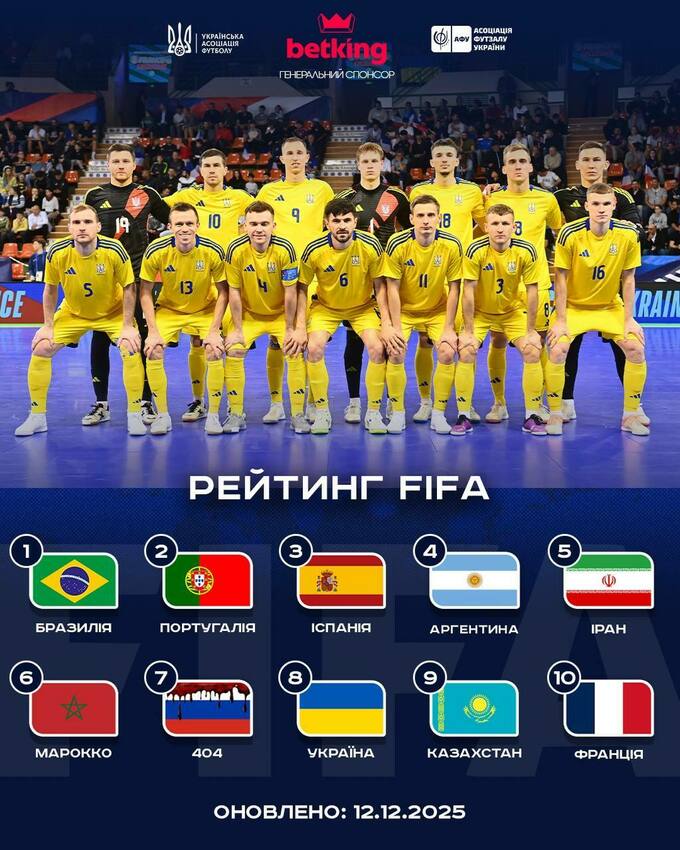Сборная Украины по футзалу поднялась на одно место в рейтинге ФИФА