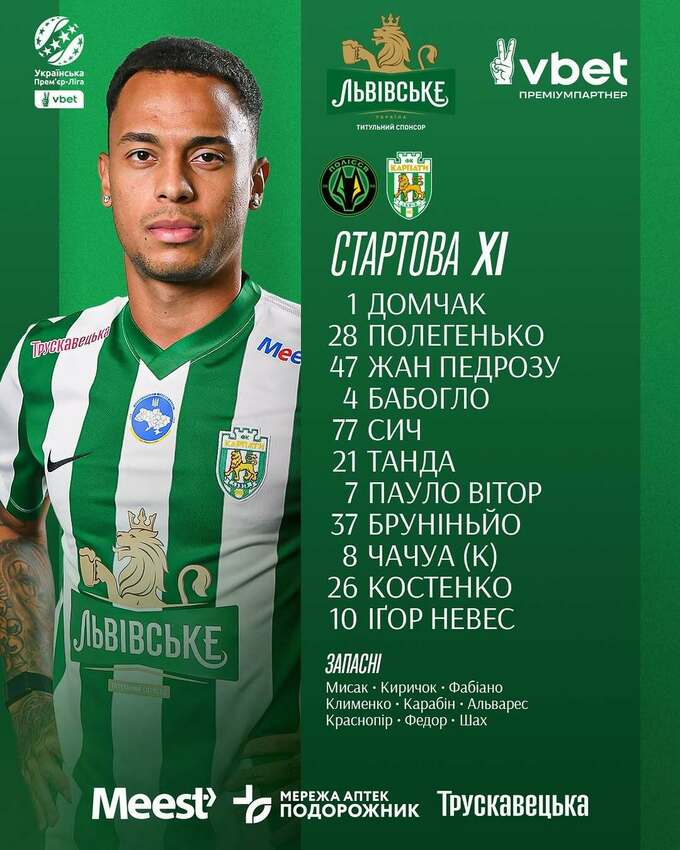 Стали известны стартовые составы на матч 16-го тура УПЛ Полесье – Карпаты