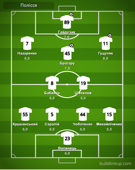 «Полесье»: Волынец – Крушинский (Виале, 90+2), Сарапий, Чоботенко, Михайличенко – Бабенко, Шепелев (Таллес, 75) – Назаренко (Иванов, 89), Брагару (Леднёв, 75), Гуцуляк – Гайдучик (Филиппов, 75).