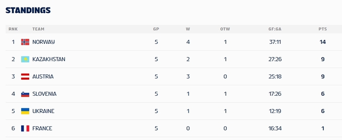 Турнир выиграла сборная Норвегии, которая еще до последней встречи гарантировала себе золото и выход в элитный дивизион. В топ-3 закончили Казахстан и Австрия.