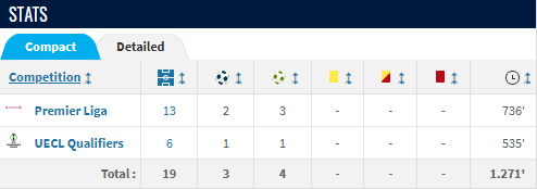 Статистика Гуцуляка в сезоне 2025/26