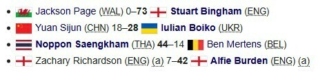 Ранее Бойко обыграл Хатема Яссина из Египта (38:2), Сюй Ичена из Китая (55:25), Оливера Лайнса из Англии (54:34) и Эллиота Слессора из Англии (35:17)