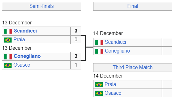 Таким образом, Прая и Осаско сыграют в матче за третье место, а в финале турнира встретятся Скандиччи и Конельяно.