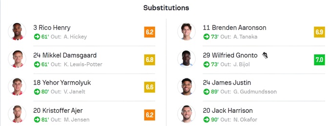 Егор вышел на поле против «Лидса» на 80-й минуте