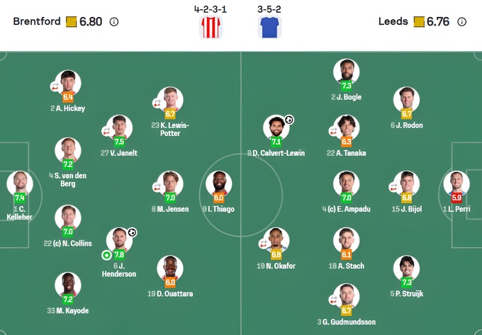 Оценка матча «Брентфорд» – «Лидс» от SofaScore