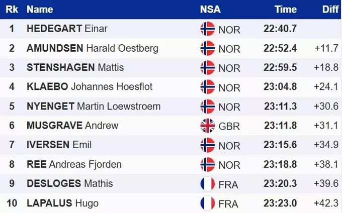 Бывший биатлонист Эйнар Хедегарт лишь во второй раз в карьере финишировал первым на Кубке мира по лыжным гонкам. Спортсмен пробежал дистанцию за 22 минуты 40 секунд.