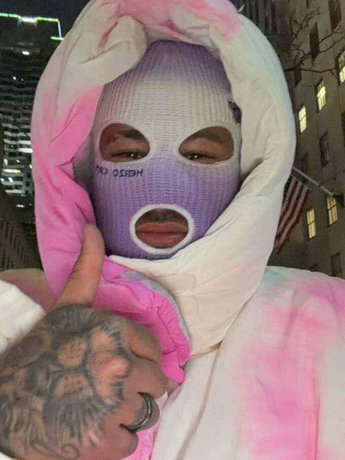 33-летний форвард гулял вместе со своей девушкой, моделью Бруной Бьянкарди, стараясь остаться инкогнито —– он надел лыжную маску. Однако именно его яркий наряд, а не маска, стал главным объектом внимания прохожих.