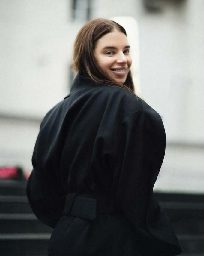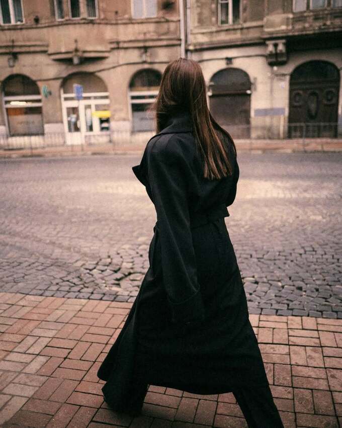 На снимках Екатерина Усик предстала в элегантном черном образе на улицах Львова.