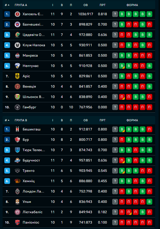 Украинцы сыграли в матчах 11-го тура Еврокубка