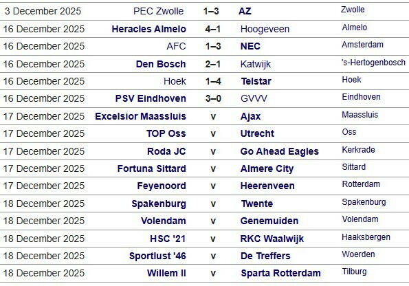 Кубок Нидерландов. 1/16 финала, 17 декабря