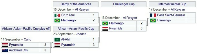 В четвертьфинале 10 декабря бразильский Фламенго в Derby of the Americas победил мексиканский клуб Крус Асуль (2:1). Египетский Пирамидс ранее обыграл новозеландский Окленд Сити (3:0) и саудовский Аль-Ахли (3:1).