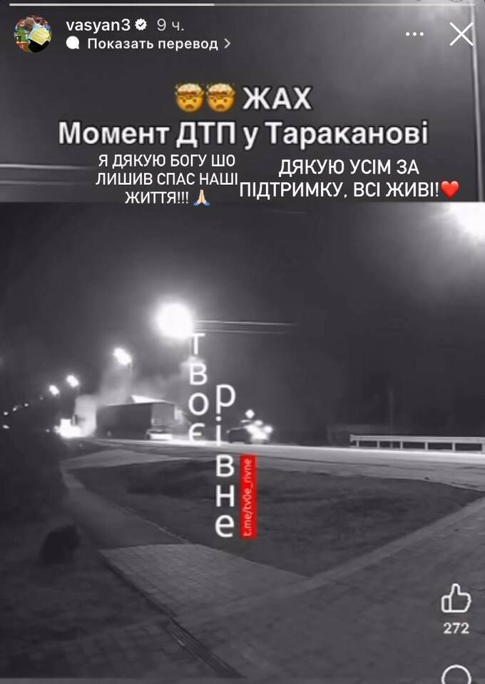 «Я благодарю Бога, что оставил, спас наши жизни. Благодарю всех за поддержку. Все живы», – написал Василий на своей странице в Instagram.