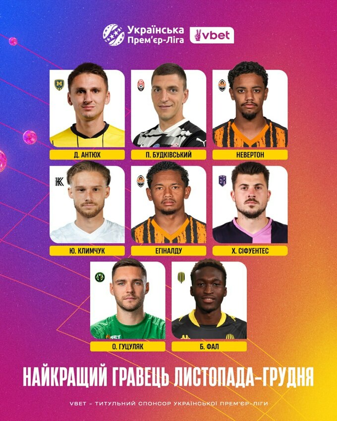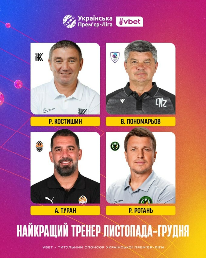 Украинская Премьер-лига проводит голосование по определению лучшего тренера и лучшего игрока ноября–декабря 2025 года в УПЛ.
