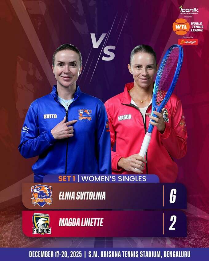 Украинская теннисистка Элина Свитолина добыла убедительную победу над Магдой Линетт на выставочном командном турнире World Tennis League в Бенгалуру, Индия.