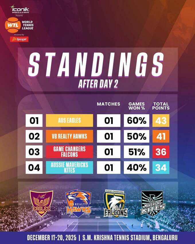 18 декабря состоялись матчи второго тура на командном турнире World Tennis League в Бенгалуру, Индия.