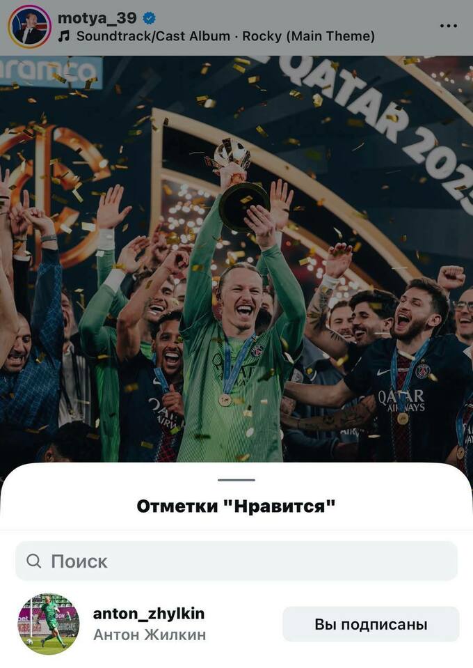 После игры вратарь опубликовал пост в социальных сетях, который не остался без внимания. В частности, запись понравилась украинскому голкиперу «Ингульца» Антону Жилкину.