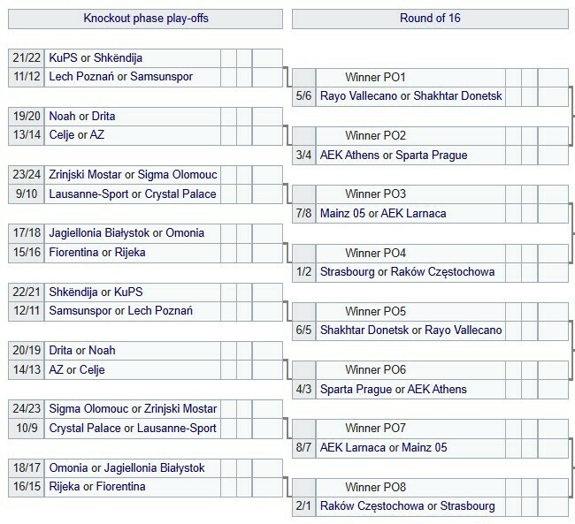 Напрямую в 1/8 финала вышли: Страсбург (16 очков), Ракув (14), АЕК Афины, Спарта Прага, Райо Вальекано, Шахтер, Майнц (по 13), АЕК Ларнака (12),