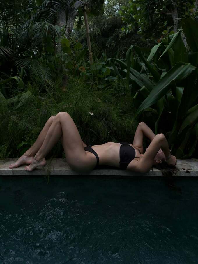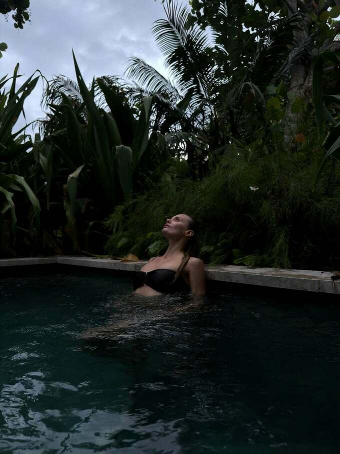 На снимках Даяна позирует в купальнике на фоне тропической природы и бассейна.