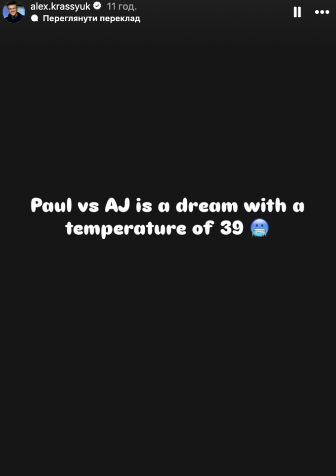 «Поединок между Энтони Джошуа и Джейком Полом – это сон при температуре 39», – написал Красюк в Инстаграме.
