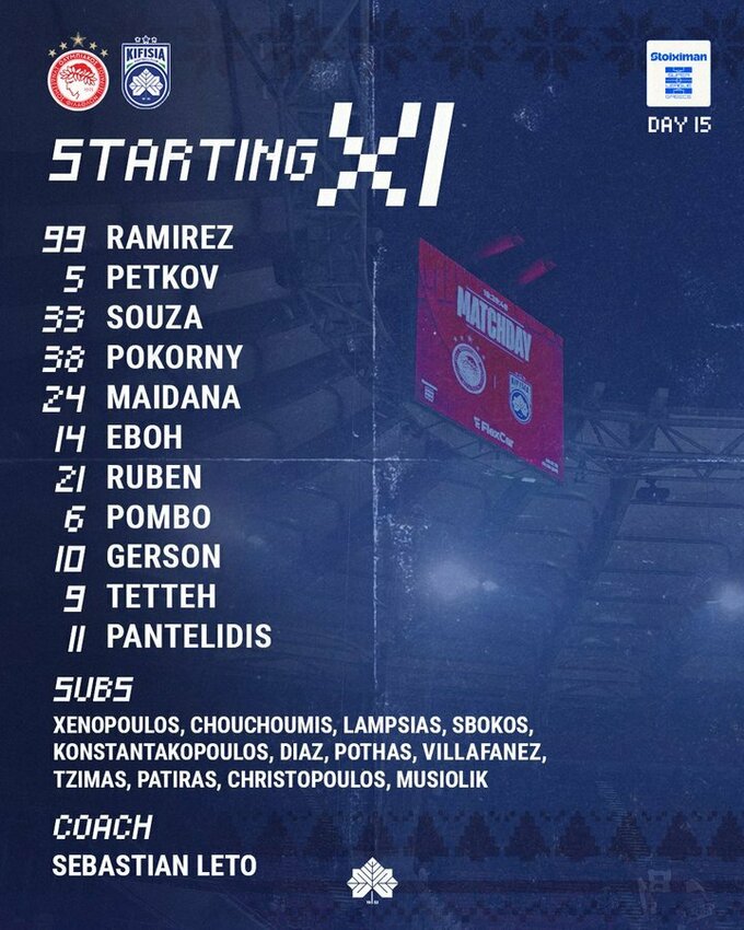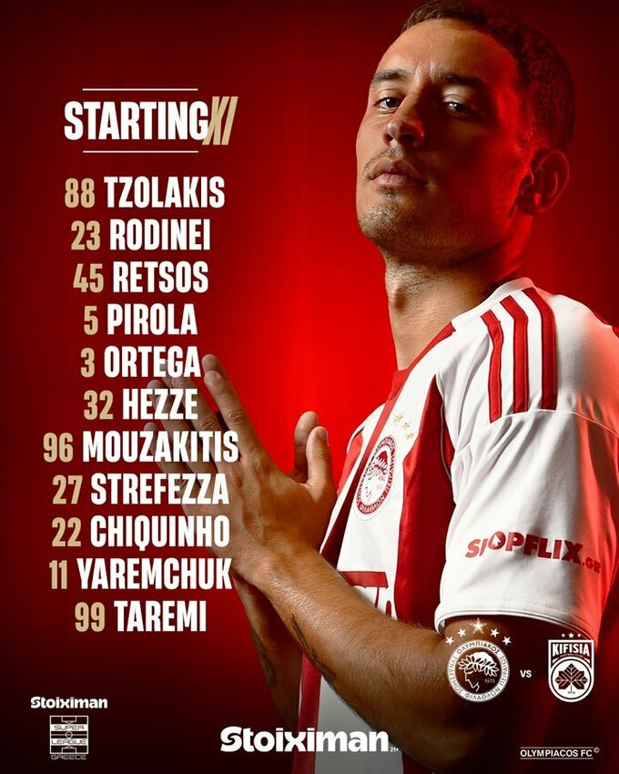 Стартовые составы на матч «Олимпиакос» – «Кифисия»: