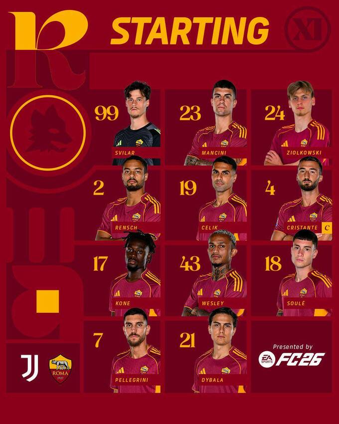 Стартовые составы команд на матч «Ювентус» – «Рома»