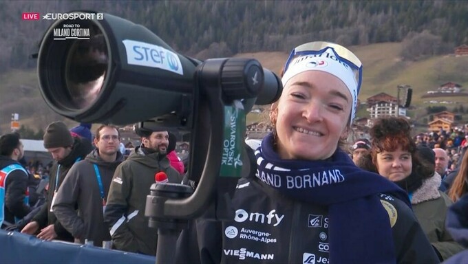 Жанмонно не постеснялась прийти и поддержать своих партнеров после женского старта, в котором она финишировала второй.