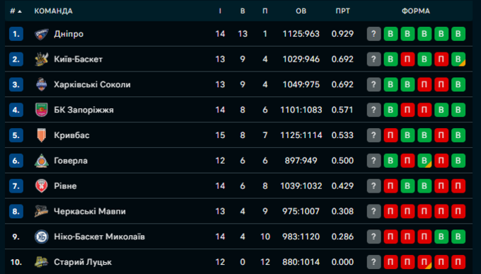 Суперлига: уверенная победа Запорожья, разгромы от Днепра и Киев-Баскета