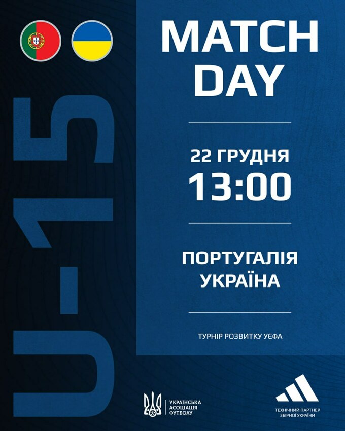 22 декабря в Португалии юношеская сборная Украины U-15 (футболисты не старше 2011 г.р.) в решающем матче на Турнире развития УЕФА встречалась с хозяевами – командой Португалия U-15.