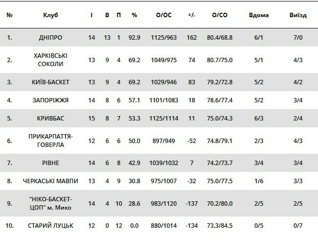 По одной победе одержали Кривбасс и Запорожье, а вот Нико-Баскет дома проиграл дважды и опустился на 9 место, снова оказавшись вне зоны плей-офф.