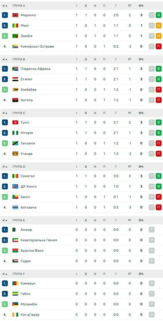 Турнирное положение в группе C: Тунис, Нигерия (по 3 очка), Танзания, Уганда (по 0).
