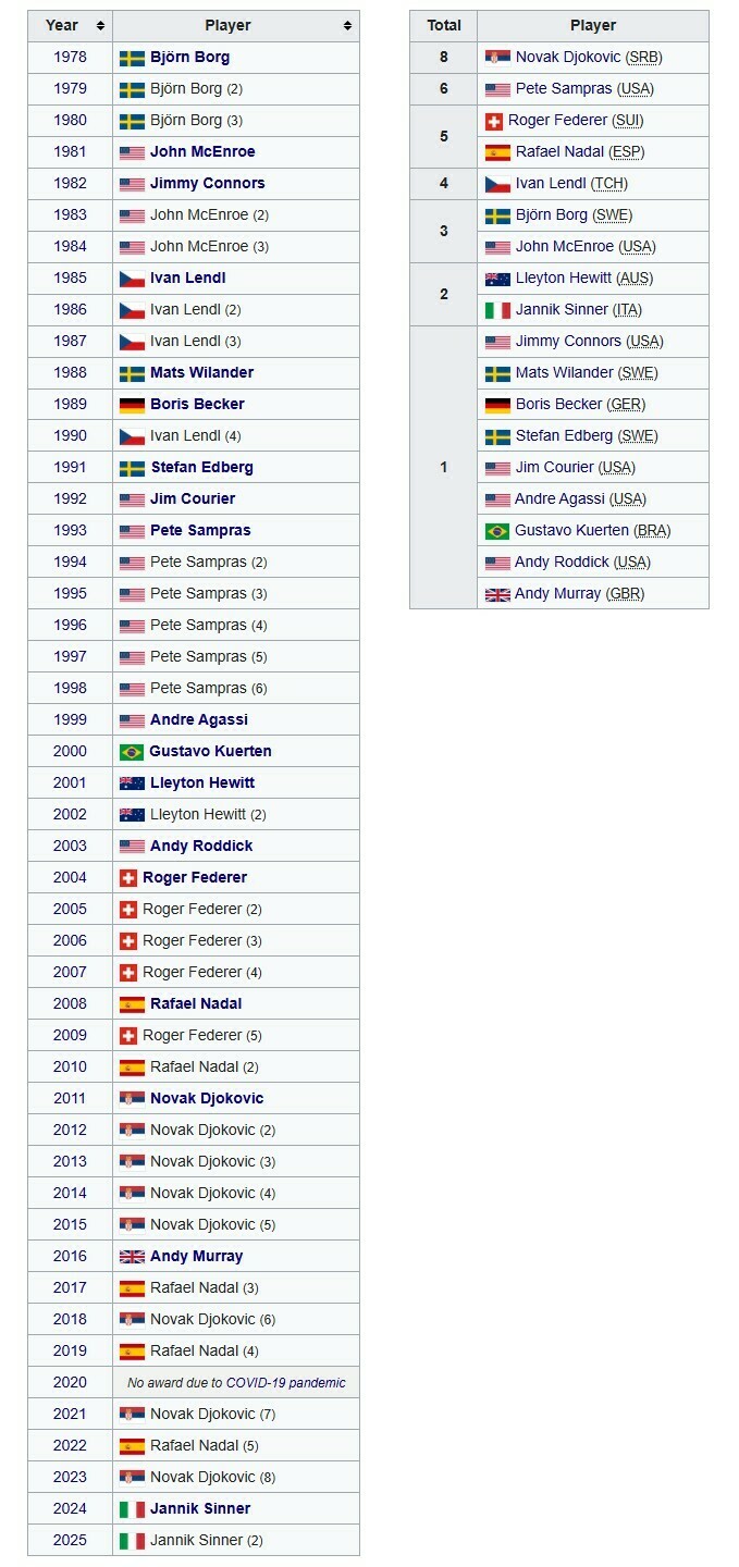 У мужчин признание получил итальянец Янник Синнер, а у женщин – Арина Соболенко.