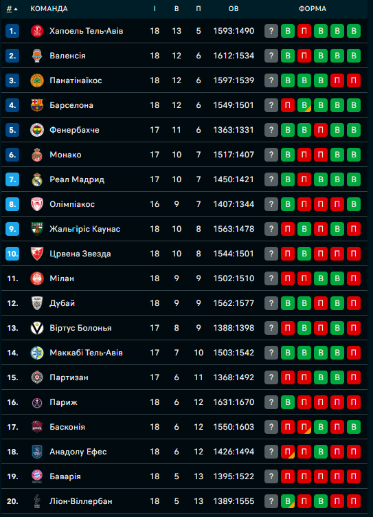 Состоялись семь матчей 18-го тура Евролиги