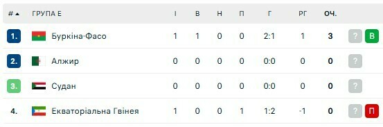 В группе E сборная Буркина-Фасо набрала 3 очка, Экваториальная Гвинея идет без зачетных баллов. В другом матче этого квартета сыграют Алжир и Судан.
