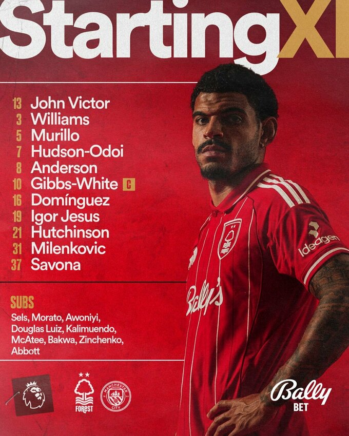 Стартовые составы матча Премьер-лиги Ноттингем Форест – Манчестер Сити