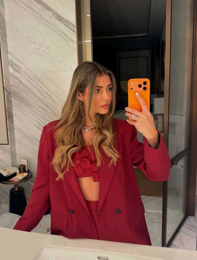 На снимках она предстала в эффектном бордовом образе, подчеркнувшем ее фигуру и чувство стиля.