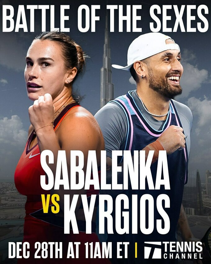28 декабря состоится выставочный матч между первой ракеткой мира в женском одиночном разряде Ариной Соболенко и финалистом Уимблдона-2022 Ником Кирьосом из Австралии.