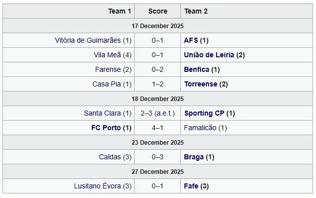 В других поединках 1/4 финала встретятся: Торренсе [D2] – Лейрия [D2], Фафе [D3] – Брага, Спортинг – AVS.