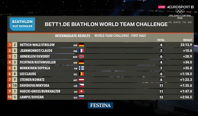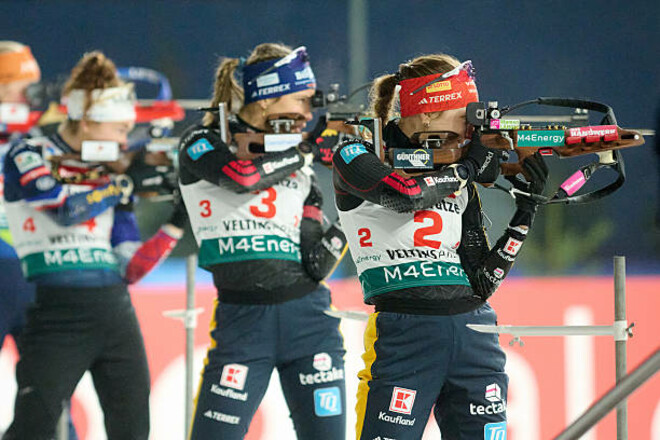 Местную публику порадовал немецкий дуэт – Янина Хеттих-Вальц и Юстус Штрелов, которые с четырьмя незакрытыми мишенями финишировали первыми.