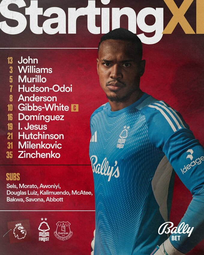 Стартовые составы на матч АПЛ между Ноттингем Форест и Эвертоном