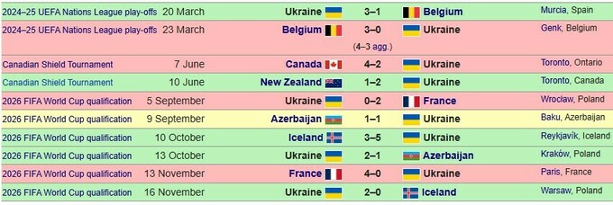 Статистика: 10 матчей сборной Украины в 2025 году (+5=1–4)