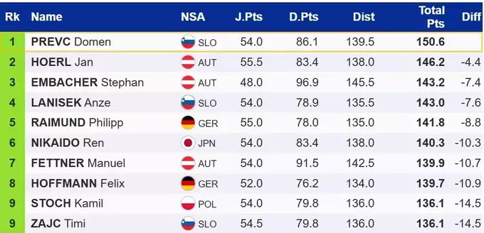 Победителем квалификации стал словенец Домен Превц, вторым – Ян Херль из Австрии, а третьим финишировал еще один австриец Штефан Эмбахер.