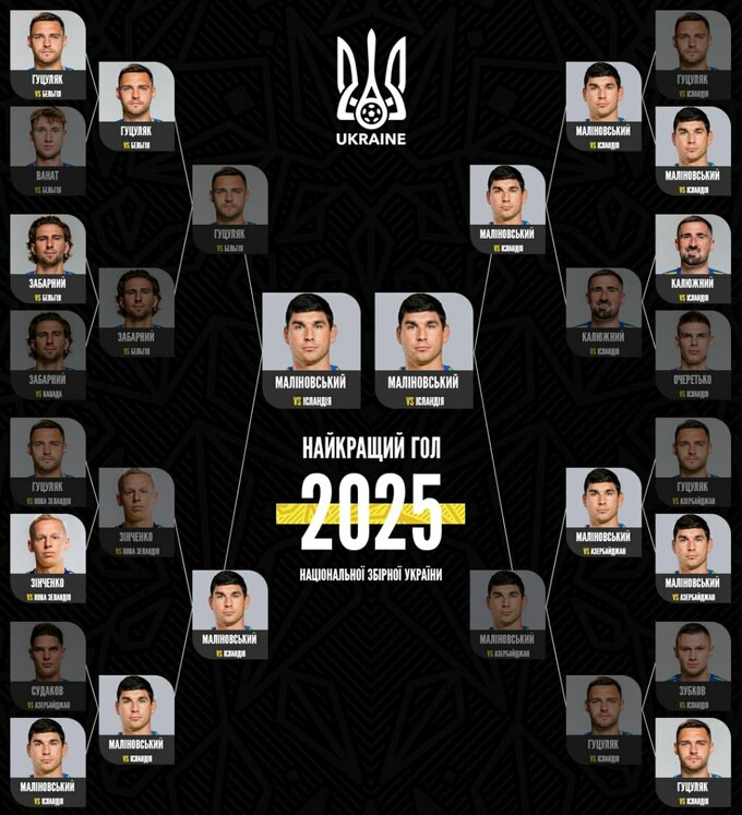 Сетка конкурса на лучший гол сборной Украины в 2025 году