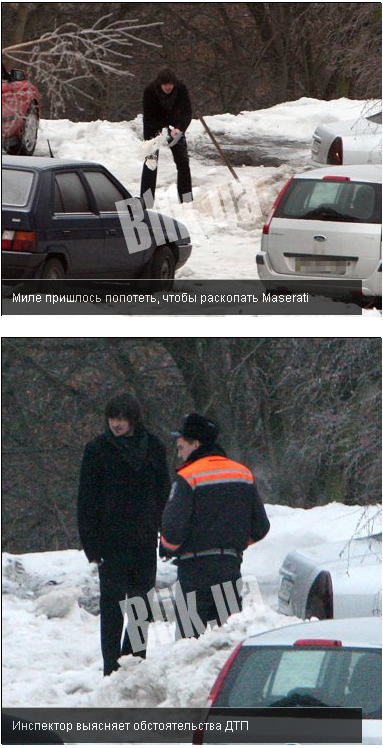 Судя по всему, Миле одному стало трудно, и ему на подмогу приехали его приятели с лопатами. Кстати, друзья тоже были на Maserati. Ребята дружно раскопали занесенную снегом тачку. Но снежный плен оказался цветочками. Дальше – хуже! На левом крыле авто футболист обнаружил здоровенную вмятину! Миля тут же вызвал ГАИ. Дождавшись инспекторов, они вместе около часа оформляли протокол.