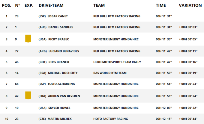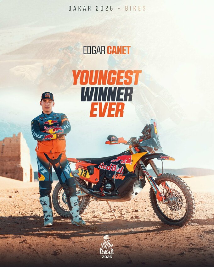 В классе мотоциклов легендарный марафон начался с приятного сюрприза. 20-летний пилот Ред Булл KTM Эдгар Канет стал самым молодым победителем этапа в истории.