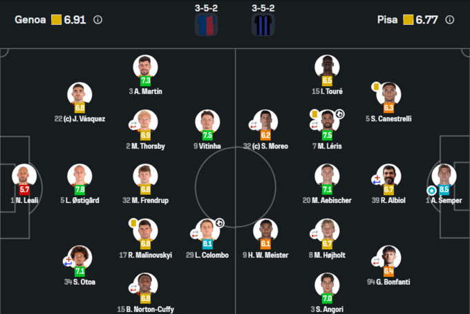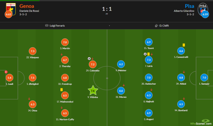Стала известна оценка украинского полузащитника «Дженоа» Руслана Малиновского за матч с «Пизой».