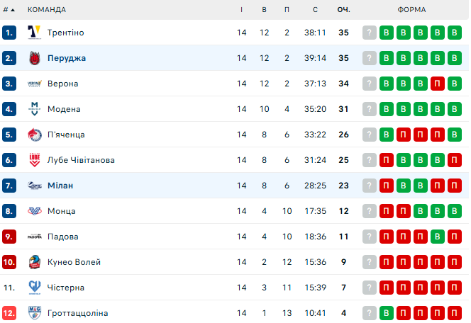 В воскресенье, 4 января, состоялись заключительные матчи 14-го тура Суперлиги Италии по волейболу. В одном из поединков этапа встретились «Перуджа» и «Милан». За команду из Умбрии выступает бывший капитан сборной Украины Олег Плотницкий.