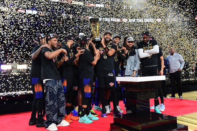 «Нью-Йорк» станет первым, кто не поднимет баннер НБА Кап, поскольку предыдущие чемпионы турнира – «Лос-Анджелес Лейкерс» в 2023 году и «Милуоки Бакс» в 2024 году – делали это в честь своих побед.
