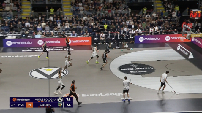 «Жальгирис» несколько раз сталкивался с помехами в четвертой четверти, когда сотрудники арены находились на площадке во время игры. Один из таких эпизодов произошел за три минуты до конца матча, когда Мозес Райт пытался выполнить данк, еще один — за полторы минуты до финальной сирены, когда «Жальгирис» разгонял быстрый отрыв.