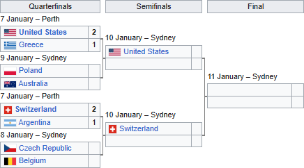 7 января уже состоялось два четвертьфинальных матча: США переиграли Грецию (2:1), а Швейцария справилась с Аргентиной (2:1).
