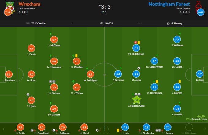 Лучшим игроком встречи был признан вингер «Ноттингем Форест» Каллум Хадсон-Одой, который оформил дубль и получил оценку 8,8.